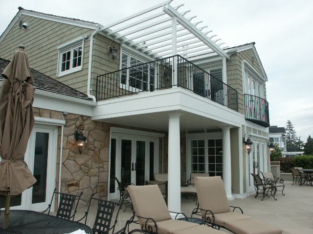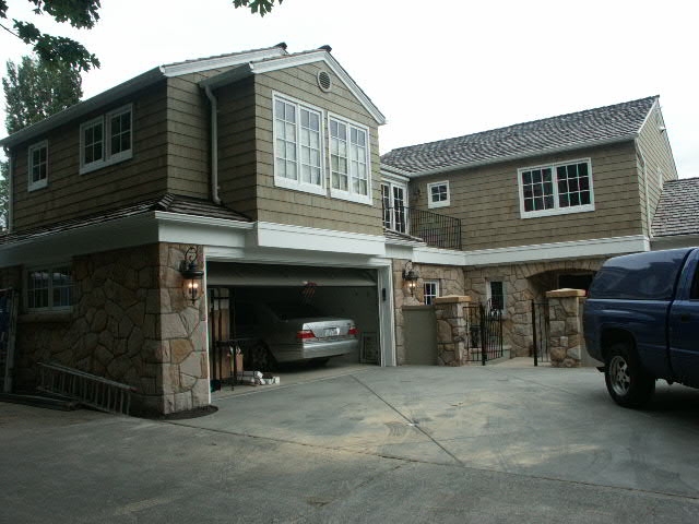 This large old home is nestled on a tight lane on the shores of Lake Washington. Access was a challenge. The home, originally constructed in the late 30's was largely original. This made it a find and yet left challenges to honor its past while moving it into the present. The project consisted of deconstructing a failing garage and remodeling it into a garage/carriage house wing. Bedrooms, bathrooms, and kitchen were fully updated, yet true to their roots in tile detailing. The "living room" was a grand room that was also updatead with new fireplaces facings and mantel, a restored "barrel vault" ceiling with "ghost speakers" taped into the ceiling finish for background music. Lakeside terraces were updated and expanded with new stacked stone walls, large pavers, fire pit, covered porch that provides a master bedroom deck and arbor above. Fabulous sandstone rock exterior cladding was restored. A former "wet basement" was dewatered, and finished to a high level as a billiard room, wine room, home entertainment room, and guest area with the bath and 2nd laundry.